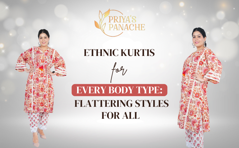First, it is crucial to know about different types of body types, and then about styling them. For example, an hourglass body plazo with a straight-fit kurti is a smart way to create an ethnic outfit. Further, for the apple body type you can go for the A-line kurtis.