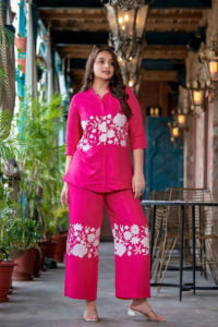 - Fabric: Crafted from premium silk, this co-ord set offers a luxurious feel, ensuring a truly indulgent experience.