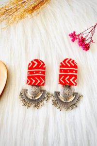 Red Patola Print Fabric Earrings