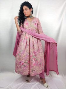 Dupatta: Completing the ensemble is a organza dupatta that adds an ethereal touch. The lightweight and flowy fabric of the dupatta allows for easy draping and movement.