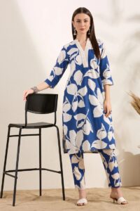 Women, make your casual outings stand out with our stunning Blue Kurta set. With red detailing of the amazing thread embroidery, you will be able to make any occasion light up. Made with cotton slubs, your comfort will not be compromised. This Co-ord set is sure to level up your wardrobe.Stylish, comfortable, and perfect for casual outings and daily wear.