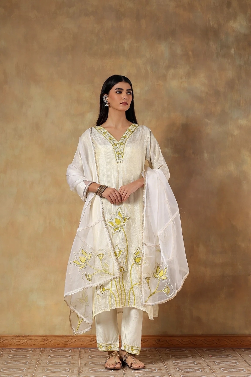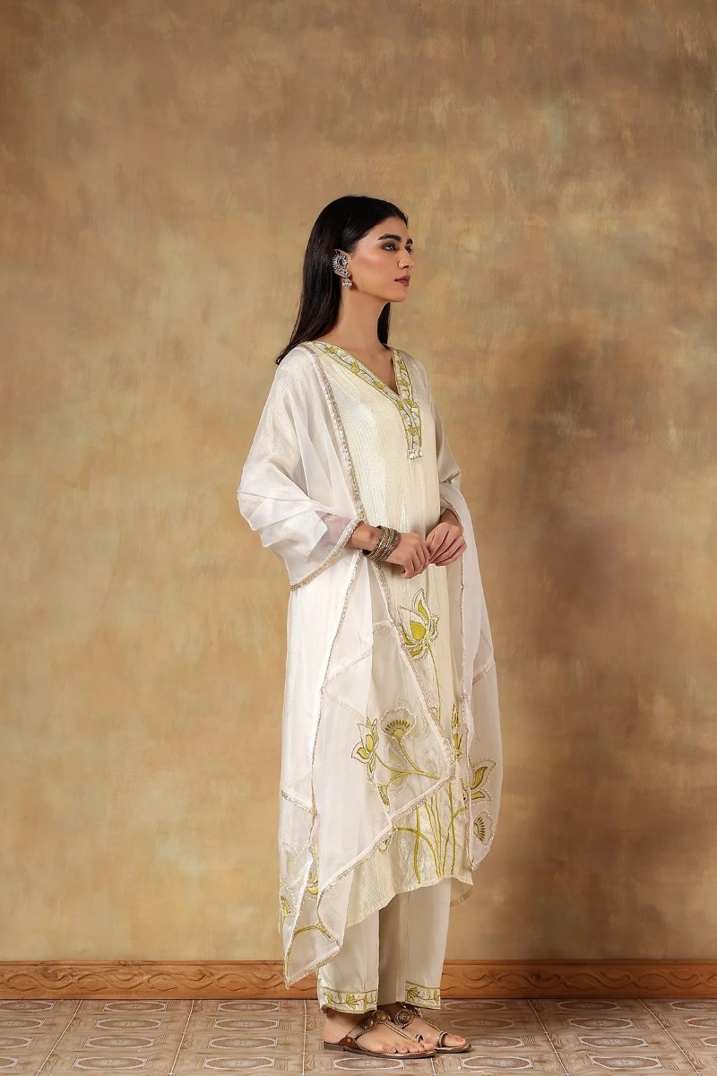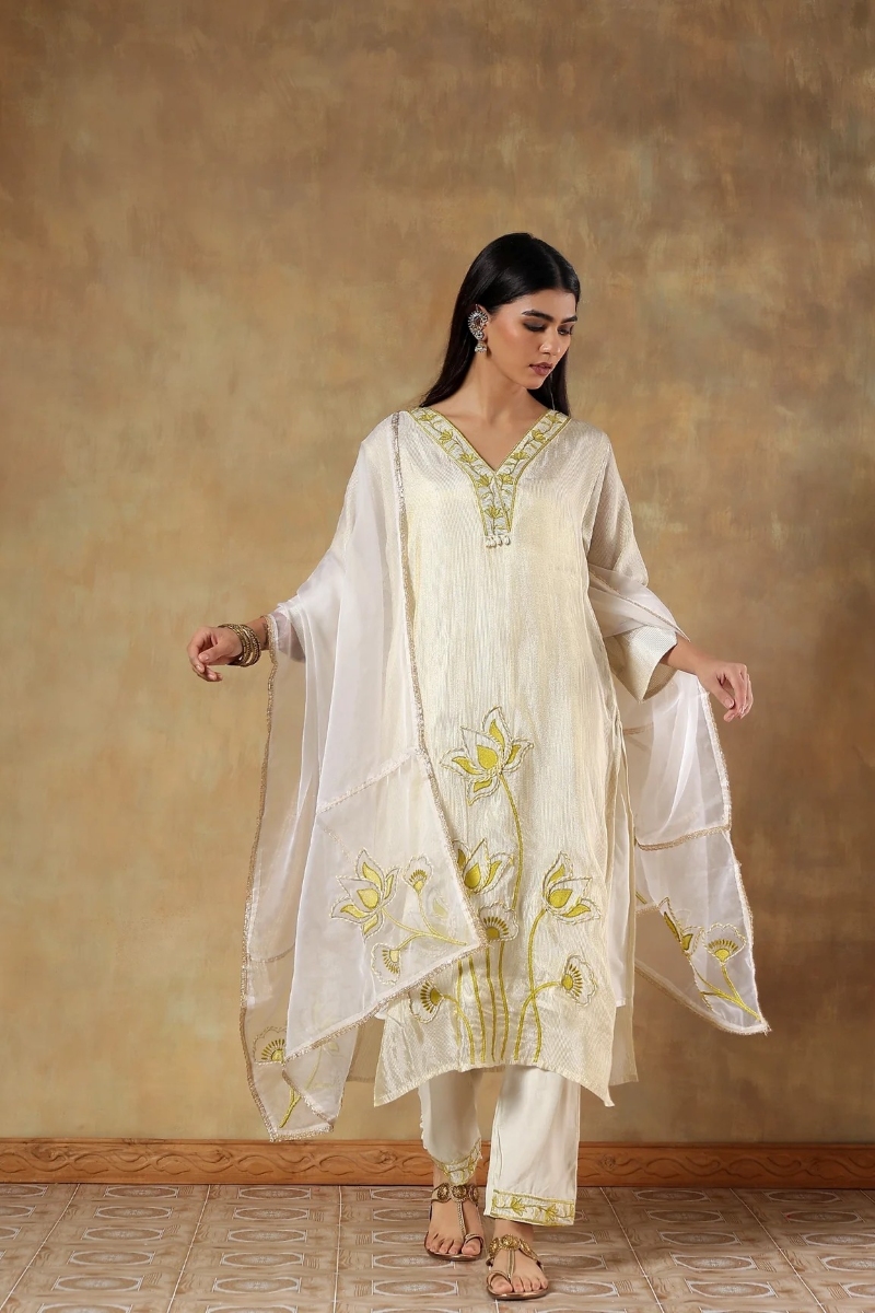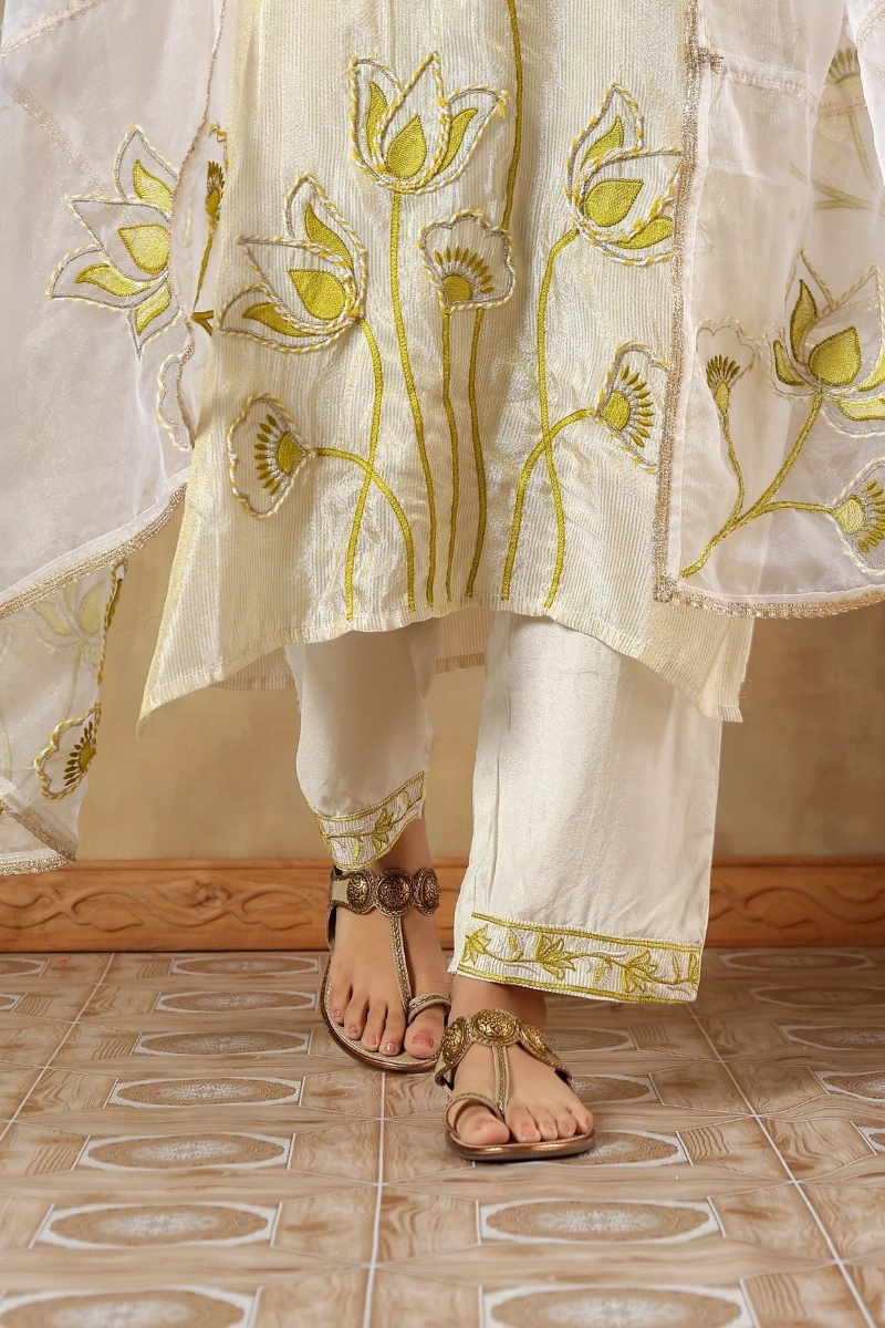 Fabric- Kurta: Tissue Silk, Dupatta: Organza, Pants: Shantoon