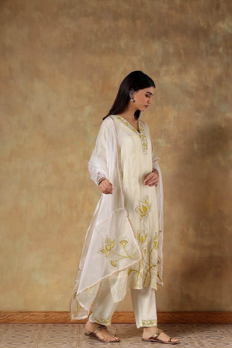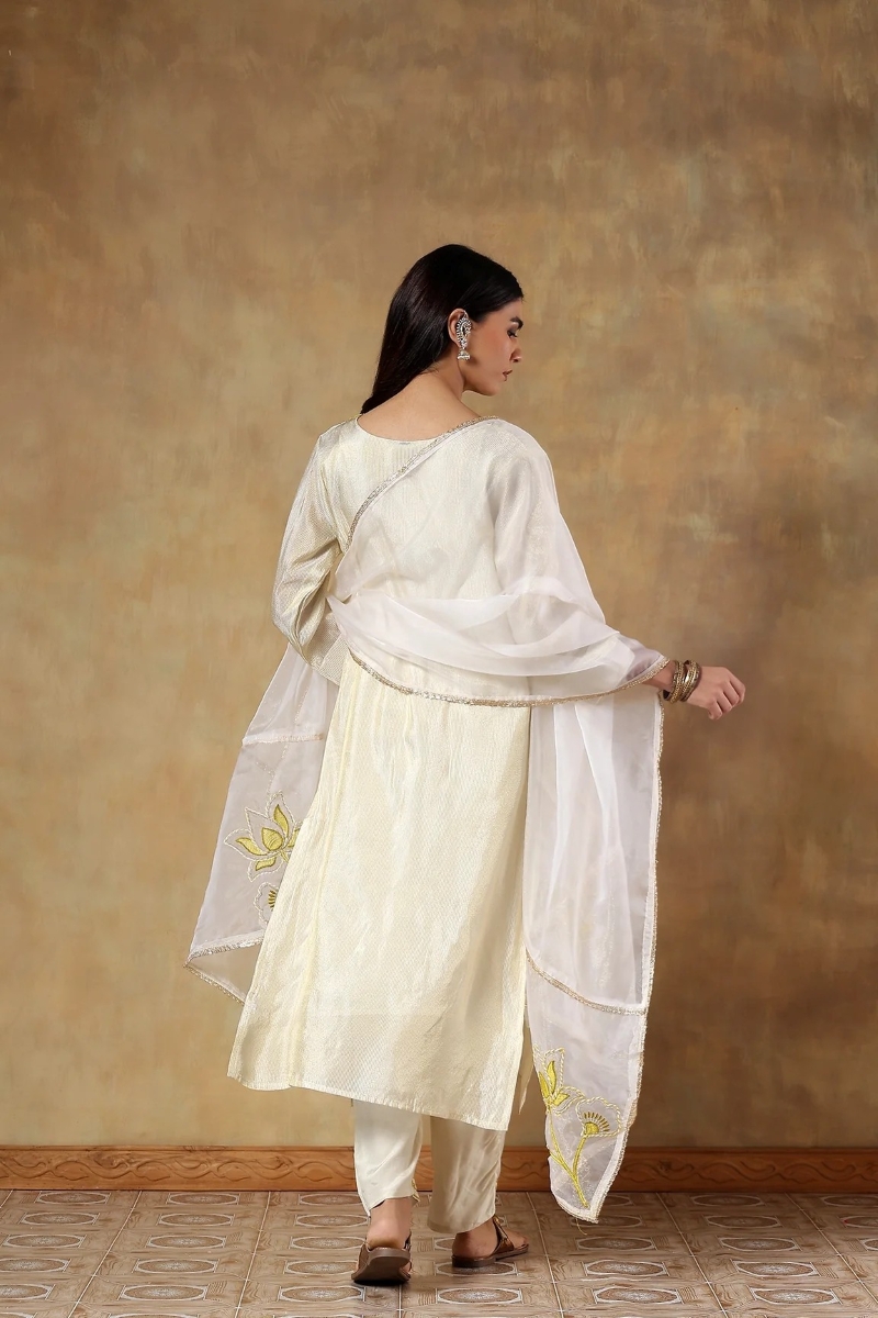 Dupatta Details- The look of this kurta set is amped with an organza dupatta. The embroideries on both ends and the neatly attached gota lace are giving this set the perfect finish.