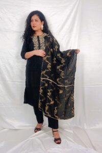 A beautiful, exquisite Kurti Pant Dupatta Set, crafted from the finest cotton to ensure comfort and elegance. This set, designed for the modern woman, features a stylish 3/4 sleeve kurti adorned with intricate sequence and embroidery work, perfect for adding a touch of sophistication to your casual wardrobe.