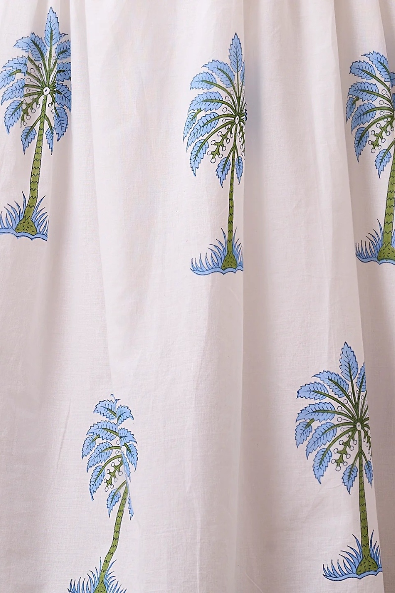 Kurta: Pure cotton, calf-length, white colored kurta with floral print. 3/4 length sleeves and a deep neck design.