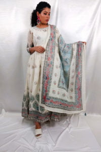 From PRIYA’S PANACHE, we present an exquisite anarkali set that is destined to become your favorite choice for any special event. This stunning ensemble combines the perfect blend of elegance, style, and craftsmanship and sure to be a favorite.