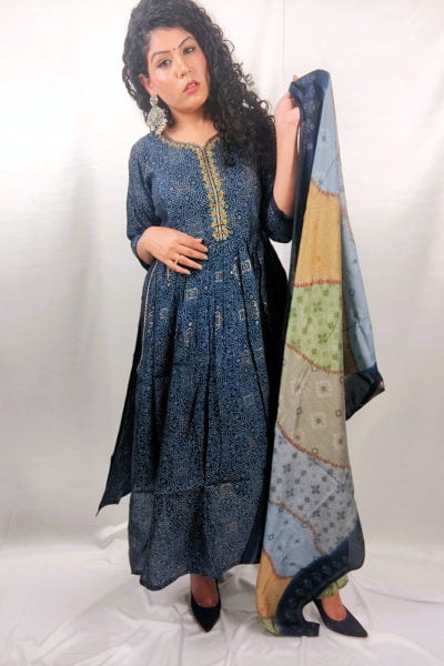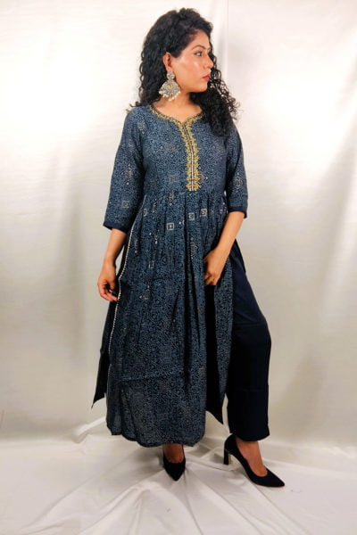 AED 179.00AED 69.00Save AED 110.00PRIYA’S PANACHE Floral Print Muslin Alia Flared Kurta Pant Dupatta Set