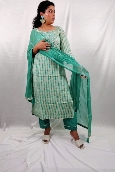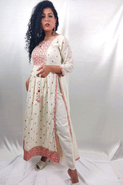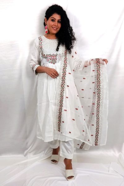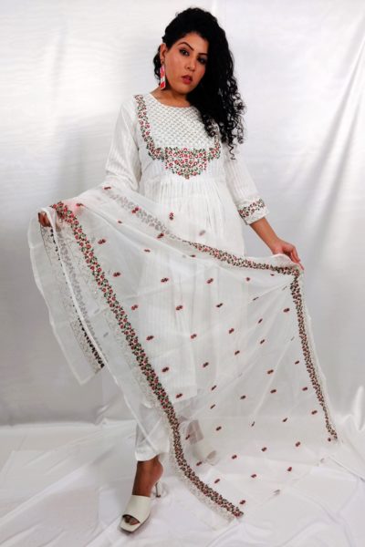 AED 199.00AED 120.00Save AED 79.00White Nyra Cut Cotton Kurta Pant Dupatta Set