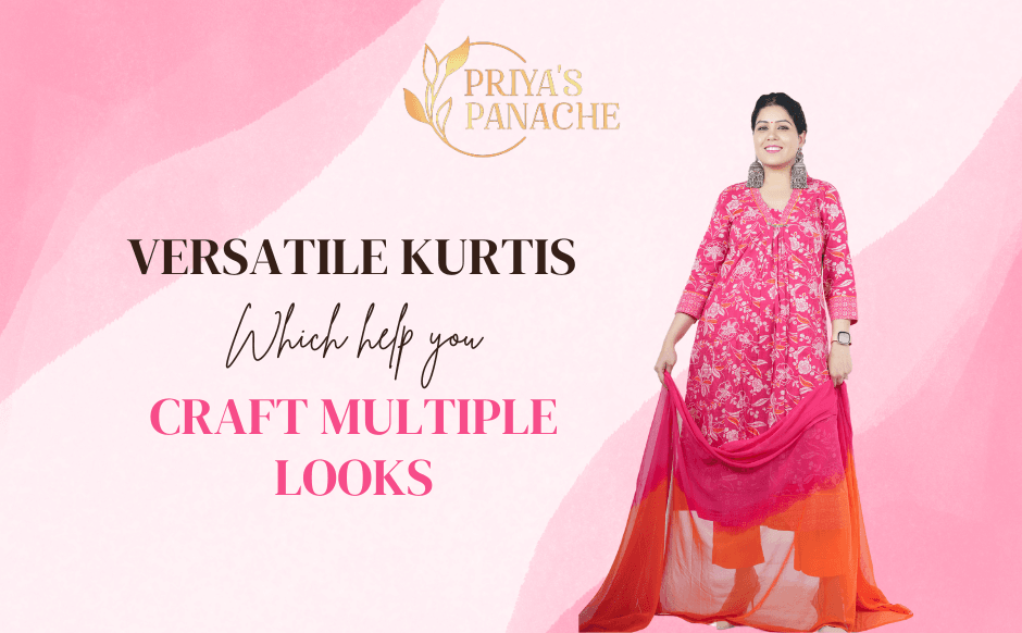 To conclude, there are several kurti designs and styles that women can wear. These versatile kurti designs can help them create multiple looks and customisations. Further, take a stylish kurti from the Priya Panache catalogue and level up your fashion game.